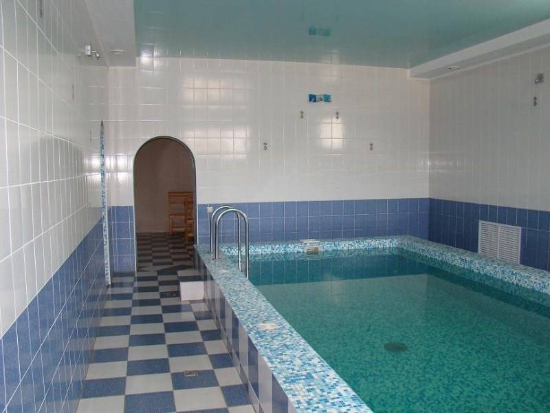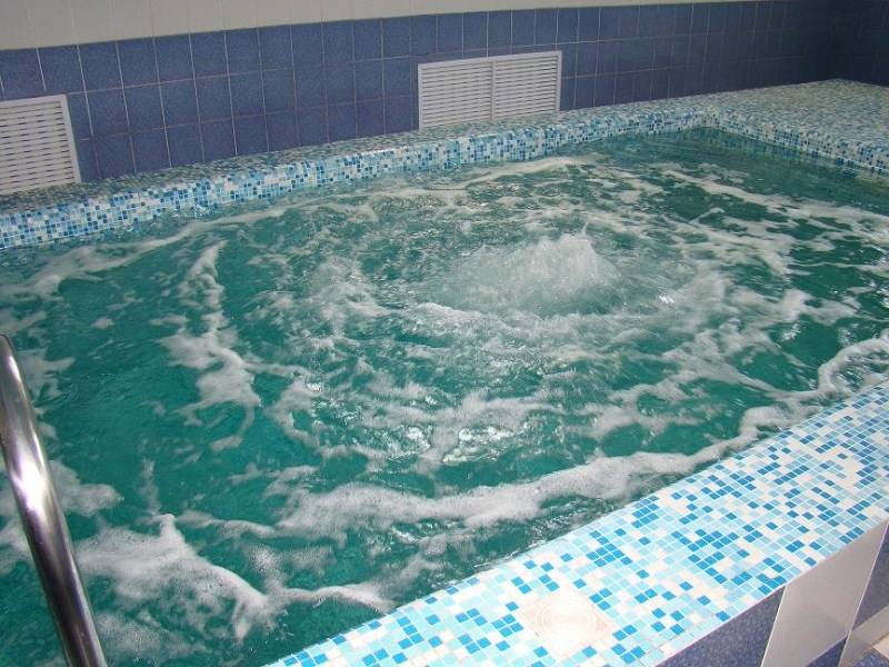 Вода в бассейне хлоркой пахнет. Кафель мокрый, скользкий. Показалось даже, что плесень есть в углу!
